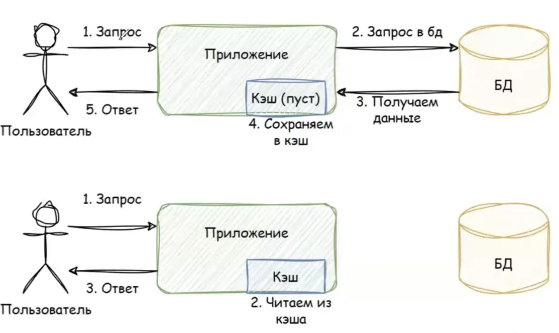 Поход в базу данных может быть достаточно дорогим, в этом случае имеет смысл сохранять данные в кэш. Ускорить сложные запросы может кэширование: мы помещаем результат вычислений в некоторое хранилище (например, Memcached или Redis), которое обладает отличными характеристиками по времени доступа к информации. Теперь вместо обращений к медленным, сложным и тяжелым backend’ам нам достаточно выполнить запрос к быстрому кэшу.